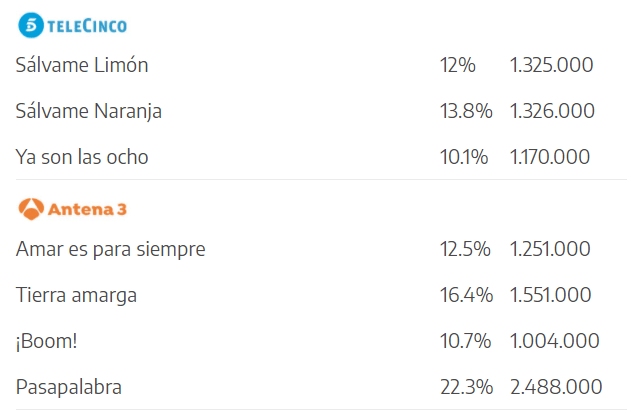 Tengo dudas de si es el fin o solo una fuerte crisis. Tengamos en cuenta que, con los datos en la mano, los resultados no son tan escandalosos. Comparemos con la franja vespertina de la ya no tan triste Antena 3: